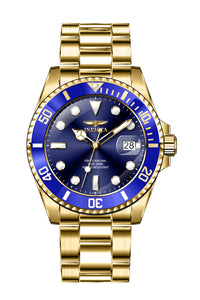 INVICTA Pro Diver Lady 38mm Stainless Steel Gold Blue dial PC32 Quartz , Band Material: Stainless Steel, Band Tone: Gold, Band Size [mm]: 20, Band Length [mm]: 179.5, Buckle Type: Fold over safety , Crown Type : Screw Down, Case Material : Stainless Steel, Case Tone : Gold, Case Size (mm) : 38, Case Back : Solid, Material of Hands : Metal, Color of Hands : Gold, Crystal Type : Mineral, Bezel Material : Stainless Steel, Dial Material : Metal, Dial Color : Blue, Dial Pattern : Sun-ray Finish .Purchasing these parts and having a non-authorized repair center open your watch voids all manufacturing warranties. Invicta cannot guarantee the quality standards of an altered timepiece, the standard 3-year limited warranty on Invicta timepieces shall be invalid if the timepiece is serviced at any time by an unauthorized repair center. This includes battery replacements, which must be done at an Invicta authorized repair center in order to maintain the eligibility of the warranty. Please follow the link below to learn more about Invicta's warranty.https://cdn.invictawatch.com/www/files/invicta-warranty-2018.pdf