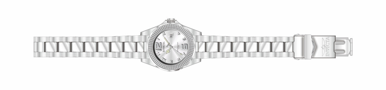 INVICTA Pro Diver Lady 38mm Stainless Steel Steel Silver dial PC32A Quartz , Band Material: Stainless Steel, Band Tone: Steel, Band Size [mm]: 18, Band Length [mm]: 195, Buckle Type: Fold over safety , Crown Type : Push, Case Material : Stainless Steel, Case Tone : Steel, Case Size (mm) : 38, Case Back : Solid, Material of Hands : Metal, Color of Hands : Silver,Luminous, Crystal Type : Mineral, Bezel Material : Stainless Steel, Dial Material : Metal, Dial Color : Silver, Dial Pattern : Sun-ray Finish .Purchasing these parts and having a non-authorized repair center open your watch voids all manufacturing warranties. Invicta cannot guarantee the quality standards of an altered timepiece, the standard 3-year limited warranty on Invicta timepieces shall be invalid if the timepiece is serviced at any time by an unauthorized repair center. This includes battery replacements, which must be done at an Invicta authorized repair center in order to maintain the eligibility of the warranty. Please follow the link below to learn more about Invicta's warranty.https://cdn.invictawatch.com/www/files/invicta-warranty-2018.pdf