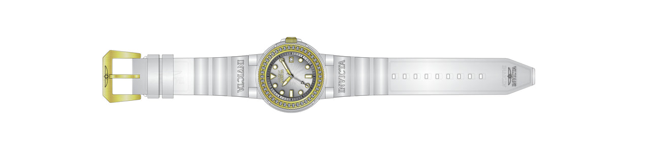 INVICTA Pro Diver Lady 40.00mm Stainless Steel + Plastic + Crystal Gold + White + Steel Silver dial PC32 Quartz , Band Material: Silicone, Band Tone: White, Band Size [mm]: 23.5, Band Length [mm]: 185, Buckle Type: Buckle , Crown Type : Push, Case Material : Stainless Steel,Plastic,Crystal, Case Tone : Gold,White,Steel, Case Size (mm) : 40, Case Back : Solid, Material of Hands : Metal, Color of Hands : Gold,Luminous, Crystal Type : Mineral, Bezel Material : Stainless Steel,Crystal, Dial Material : Metal, Dial Color : Silver, Dial Pattern : Sun-ray Finish .Purchasing these parts and having a non-authorized repair center open your watch voids all manufacturing warranties. Invicta cannot guarantee the quality standards of an altered timepiece, the standard 3-year limited warranty on Invicta timepieces shall be invalid if the timepiece is serviced at any time by an unauthorized repair center. This includes battery replacements, which must be done at an Invicta authorized repair center in order to maintain the eligibility of the warranty. Please follow the link below to learn more about Invicta's warranty.https://cdn.invictawatch.com/www/files/invicta-warranty-2018.pdf