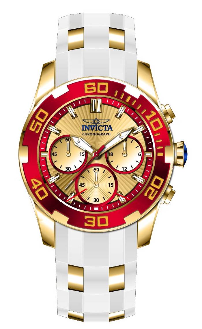Band Material: Stainless Steel,Silicone, Band Tone: Gold,White, Band Width: 20MM, Band Length: 200MM, Crown Type: Push, Case Material: Stainless Steel, Case Tone: Gold, Case Size [mm]: 38, Case Back: Solid, Material of Hands: Metal, Color of Hands: Red,Gold, Crystal Type: Flame Fusion, Bezel Material: Stainless Steel, Dial Material: Metal, Dial Color: Gold, Dial Pattern: Sun-ray Finish .Purchasing these parts and having a non-authorized repair center open your watch voids all manufacturing warranties. Invicta cannot guarantee the quality standards of an altered timepiece, the standard 3-year limited warranty on Invicta timepieces shall be invalid if the timepiece is serviced at any time by an unauthorized repair center. This includes battery replacements, which must be done at an Invicta authorized repair center in order to maintain the eligibility of the warranty. Please follow the link below to learn more about Invicta's warranty.https://cdn.invictawatch.com/www/files/invicta-warranty-2018.pdf