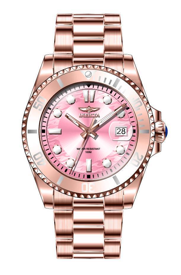 Band Material: Stainless Steel, Band Tone: Rose Gold, Band Width: 20MM, Band Length: 179.5MM, Crown Type: Push, Case Material: Stainless Steel, Case Tone: Rose Gold, Case Size [mm]: 38, Case Back: Solid, Material of Hands: Metal, Color of Hands: Rose Gold, Crystal Type: Flame Fusion, Bezel Material: Stainless Steel,Aluminum, Dial Material: Metal, Dial Color: Pink, Dial Pattern: Sun-ray Finish .Purchasing these parts and having a non-authorized repair center open your watch voids all manufacturing warranties. Invicta cannot guarantee the quality standards of an altered timepiece, the standard 3-year limited warranty on Invicta timepieces shall be invalid if the timepiece is serviced at any time by an unauthorized repair center. This includes battery replacements, which must be done at an Invicta authorized repair center in order to maintain the eligibility of the warranty. Please follow the link below to learn more about Invicta's warranty.https://cdn.invictawatch.com/www/files/invicta-warranty-2018.pdf