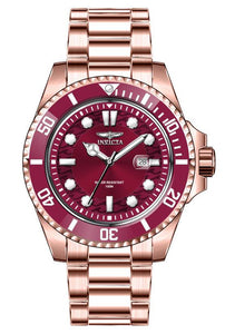Band Material: Stainless Steel, Band Tone: Rose Gold, Band Width: 18MM, Band Length: 190MM, Crown Type: Screw Down, Case Material: Stainless Steel, Case Tone: Rose Gold, Case Size [mm]: 36, Case Back: Solid, Material of Hands: Metal, Color of Hands: Silver, Crystal Type: Flame Fusion, Bezel Material: Stainless Steel,Aluminum, Dial Material: Metal, Dial Color: Burgundy, Dial Pattern: Sun-ray Finish .Purchasing these parts and having a non-authorized repair center open your watch voids all manufacturing warranties. Invicta cannot guarantee the quality standards of an altered timepiece, the standard 3-year limited warranty on Invicta timepieces shall be invalid if the timepiece is serviced at any time by an unauthorized repair center. This includes battery replacements, which must be done at an Invicta authorized repair center in order to maintain the eligibility of the warranty. Please follow the link below to learn more about Invicta's warranty.https://cdn.invictawatch.com/www/files/invicta-warranty-2018.pdf