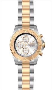 INVICTA Pro Diver Men 43mm Stainless Steel Rose Gold + Steel Silver dial VD55B Quartz , Band Material: Stainless Steel, Band Tone: Steel,Rose Gold, Band Size [mm]: 22, Band Length [mm]: 210, Buckle Type: Fold over safety , Crown Type : Screw Down, Case Material : Stainless Steel, Case Tone : Rose Gold,Steel, Case Size (mm) : 43, Case Back : Solid, Material of Hands : Metal, Color of Hands : Rose Gold,Luminous, Crystal Type : Flame Fusion, Bezel Material : Stainless Steel, Dial Material : Metal, Dial Color : Silver, Dial Pattern : Sun-ray Finish .Purchasing these parts and having a non-authorized repair center open your watch voids all manufacturing warranties. Invicta cannot guarantee the quality standards of an altered timepiece, the standard 3-year limited warranty on Invicta timepieces shall be invalid if the timepiece is serviced at any time by an unauthorized repair center. This includes battery replacements, which must be done at an Invicta authorized repair center in order to maintain the eligibility of the warranty. Please follow the link below to learn more about Invicta's warranty.https://cdn.invictawatch.com/www/files/invicta-warranty-2018.pdf