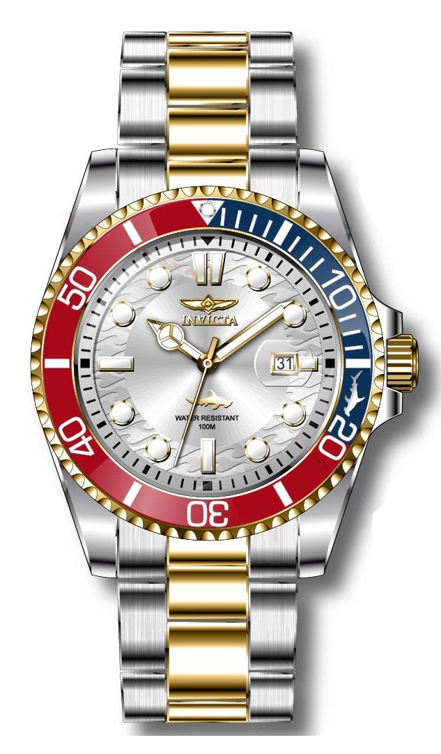 Band Material: Stainless Steel, Band Tone: Steel,Gold, Band Width: 22MM, Band Length: 185MM, Crown Type: Screw Down, Case Material: Stainless Steel, Case Tone: Steel, Case Size [mm]: 43, Case Back: Solid, Material of Hands: Metal, Color of Hands: White,Gold, Crystal Type: Flame Fusion, Bezel Material: Stainless Steel,Aluminum, Dial Material: Metal, Dial Color: Silver, Dial Pattern: Sun-ray Finish .Purchasing these parts and having a non-authorized repair center open your watch voids all manufacturing warranties. Invicta cannot guarantee the quality standards of an altered timepiece, the standard 3-year limited warranty on Invicta timepieces shall be invalid if the timepiece is serviced at any time by an unauthorized repair center. This includes battery replacements, which must be done at an Invicta authorized repair center in order to maintain the eligibility of the warranty. Please follow the link below to learn more about Invicta's warranty.https://cdn.invictawatch.com/www/files/invicta-warranty-2018.pdf