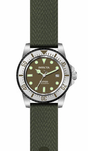 INVICTA Pro Diver Men 44mm Stainless Steel Black + Steel Green dial NH35A Automatic , Band Material: Polyester, Band Tone: Green, Band Size [mm]: 22, Band Length [mm]: 220, Buckle Type: Buckle , Crown Type : Screw Down, Case Material : Stainless Steel, Case Tone : Black,Steel, Case Size (mm) : 44, Case Back : Exhibition, Material of Hands : Metal, Color of Hands : Silver,Luminous, Crystal Type : Flame Fusion, Bezel Material : Stainless Steel, Dial Material : Metal, Dial Color : Green, Dial Pattern : None .Purchasing these parts and having a non-authorized repair center open your watch voids all manufacturing warranties. Invicta cannot guarantee the quality standards of an altered timepiece, the standard 3-year limited warranty on Invicta timepieces shall be invalid if the timepiece is serviced at any time by an unauthorized repair center. This includes battery replacements, which must be done at an Invicta authorized repair center in order to maintain the eligibility of the warranty. Please follow the link below to learn more about Invicta's warranty.https://cdn.invictawatch.com/www/files/invicta-warranty-2018.pdf