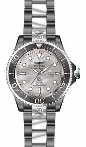 INVICTA Pro Diver Men 54mm Stainless Steel Gunmetal + Steel Platinum dial NH35A Automatic , Band Material: Stainless Steel, Band Tone: Steel,Gunmetal, Band Size [mm]: 26, Band Length [mm]: 215, Buckle Type: Fold over safety , Crown Type : Screw Down, Case Material : Stainless Steel, Case Tone : Gunmetal,Steel, Case Size (mm) : 54, Case Back : Exhibition, Material of Hands : Metal, Color of Hands : Luminous,Gunmetal, Crystal Type : Mineral, Bezel Material : Stainless Steel, Dial Material : Mother of Pearl, Dial Color : Platinum, Dial Pattern : None .Purchasing these parts and having a non-authorized repair center open your watch voids all manufacturing warranties. Invicta cannot guarantee the quality standards of an altered timepiece, the standard 3-year limited warranty on Invicta timepieces shall be invalid if the timepiece is serviced at any time by an unauthorized repair center. This includes battery replacements, which must be done at an Invicta authorized repair center in order to maintain the eligibility of the warranty. Please follow the link below to learn more about Invicta's warranty.https://cdn.invictawatch.com/www/files/invicta-warranty-2018.pdf