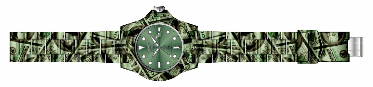 INVICTA Pro Diver Men 54mm Stainless Steel Aqua-Plating Green dial NH35A Automatic , Band Material: Stainless Steel, Band Tone: Aqua Plating, Band Size [mm]: 26, Band Length [mm]: 220, Buckle Type: Fold over safety , Crown Type : Screw Down, Case Material : Stainless Steel, Case Tone : Aqua-Plating, Case Size (mm) : 54, Case Back : Exhibition, Material of Hands : Metal, Color of Hands : Luminous,Grey, Crystal Type : Mineral, Bezel Material : Stainless Steel, Dial Material : Metal, Dial Color : Green, Dial Pattern : Sun-ray Finish .Purchasing these parts and having a non-authorized repair center open your watch voids all manufacturing warranties. Invicta cannot guarantee the quality standards of an altered timepiece, the standard 3-year limited warranty on Invicta timepieces shall be invalid if the timepiece is serviced at any time by an unauthorized repair center. This includes battery replacements, which must be done at an Invicta authorized repair center in order to maintain the eligibility of the warranty. Please follow the link below to learn more about Invicta's warranty.https://cdn.invictawatch.com/www/files/invicta-warranty-2018.pdf