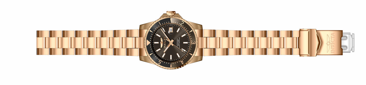 INVICTA Pro Diver Men 44mm Stainless Steel Rose Gold Brown dial NH35A Automatic , Band Material: Stainless Steel, Band Tone: Rose Gold, Band Size [mm]: 22, Band Length [mm]: 210, Buckle Type: Fold over safety , Crown Type : Screw Down, Case Material : Stainless Steel, Case Tone : Rose Gold, Case Size (mm) : 44, Case Back : Exhibition, Material of Hands : Metal, Color of Hands : Rose Gold,Luminous, Crystal Type : Mineral, Bezel Material : Stainless Steel, Dial Material : Metal, Dial Color : Brown, Dial Pattern : Sun-ray Finish .Purchasing these parts and having a non-authorized repair center open your watch voids all manufacturing warranties. Invicta cannot guarantee the quality standards of an altered timepiece, the standard 3-year limited warranty on Invicta timepieces shall be invalid if the timepiece is serviced at any time by an unauthorized repair center. This includes battery replacements, which must be done at an Invicta authorized repair center in order to maintain the eligibility of the warranty. Please follow the link below to learn more about Invicta's warranty.https://cdn.invictawatch.com/www/files/invicta-warranty-2018.pdf