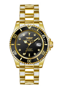INVICTA Pro Diver Men 40mm Stainless Steel Gold Black dial PC32 Quartz , Band Material: Stainless Steel, Band Tone: Gold, Band Size [mm]: 20, Band Length [mm]: 180, Buckle Type: Fold over safety , Crown Type : Screw Down, Case Material : Stainless Steel, Case Tone : Gold, Case Size (mm) : 40, Case Back : Solid, Material of Hands : Metal, Color of Hands : Gold, Crystal Type : Mineral, Bezel Material : Stainless Steel,Aluminum, Dial Material : Metal, Dial Color : Black, Dial Pattern : None .Purchasing these parts and having a non-authorized repair center open your watch voids all manufacturing warranties. Invicta cannot guarantee the quality standards of an altered timepiece, the standard 3-year limited warranty on Invicta timepieces shall be invalid if the timepiece is serviced at any time by an unauthorized repair center. This includes battery replacements, which must be done at an Invicta authorized repair center in order to maintain the eligibility of the warranty. Please follow the link below to learn more about Invicta's warranty.https://cdn.invictawatch.com/www/files/invicta-warranty-2018.pdf