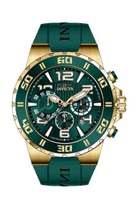 INVICTA Pro Diver Men 48mm Stainless Steel Gold Green dial VD53 Quartz , Band Material: Silicone, Band Tone: Green, Band Size [mm]: 30, Band Length [mm]: 210, Buckle Type: Buckle , Crown Type : Push, Case Material : Stainless Steel, Case Tone : Gold, Case Size (mm) : 48, Case Back : Solid, Material of Hands : Metal, Color of Hands : Gold, Crystal Type : Flame Fusion, Bezel Material : Stainless Steel, Dial Material : Metal, Dial Color : Green, Dial Pattern : Sun-ray Finish .Purchasing these parts and having a non-authorized repair center open your watch voids all manufacturing warranties. Invicta cannot guarantee the quality standards of an altered timepiece, the standard 3-year limited warranty on Invicta timepieces shall be invalid if the timepiece is serviced at any time by an unauthorized repair center. This includes battery replacements, which must be done at an Invicta authorized repair center in order to maintain the eligibility of the warranty. Please follow the link below to learn more about Invicta's warranty.https://cdn.invictawatch.com/www/files/invicta-warranty-2018.pdf