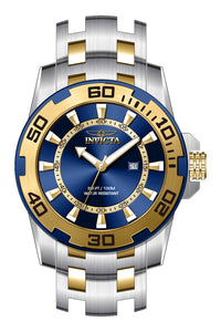 INVICTA Pro Diver Men 50mm Stainless Steel Silver Blue dial PC32 Quartz , Band Material: Stainless Steel, Band Tone: Steel,Gold, Band Size [mm]: 26, Band Length [mm]: 190, Buckle Type: Fold over safety , Crown Type : Push, Case Material : Stainless Steel, Case Tone : Silver, Case Size (mm) : 50, Case Back : Solid, Material of Hands : Metal, Color of Hands : White,Gold, Crystal Type : Flame Fusion, Bezel Material : Stainless Steel, Dial Material : Metal, Dial Color : Blue, Dial Pattern : Sun-ray Finish .Purchasing these parts and having a non-authorized repair center open your watch voids all manufacturing warranties. Invicta cannot guarantee the quality standards of an altered timepiece, the standard 3-year limited warranty on Invicta timepieces shall be invalid if the timepiece is serviced at any time by an unauthorized repair center. This includes battery replacements, which must be done at an Invicta authorized repair center in order to maintain the eligibility of the warranty. Please follow the link below to learn more about Invicta's warranty.https://cdn.invictawatch.com/www/files/invicta-warranty-2018.pdf