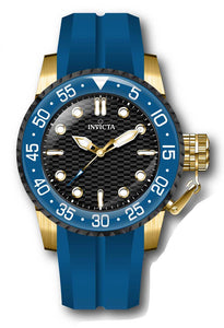 INVICTA Pro Diver Men 50mm Stainless Steel Gold Black dial PC21J Quartz , Band Material: Silicone, Band Tone: Blue, Band Size [mm]: 26, Band Length [mm]: 193, Buckle Type: Buckle , Crown Type : Screw Down, Case Material : Stainless Steel, Case Tone : Gold, Case Size (mm) : 50, Case Back : Solid, Material of Hands : Metal, Color of Hands : Blue,Gold, Crystal Type : Flame Fusion, Bezel Material : Stainless Steel, Dial Material : Carbon Fiber, Dial Color : Black .Purchasing these parts and having a non-authorized repair center open your watch voids all manufacturing warranties. Invicta cannot guarantee the quality standards of an altered timepiece, the standard 3-year limited warranty on Invicta timepieces shall be invalid if the timepiece is serviced at any time by an unauthorized repair center. This includes battery replacements, which must be done at an Invicta authorized repair center in order to maintain the eligibility of the warranty. Please follow the link below to learn more about Invicta's warranty.https://cdn.invictawatch.com/www/files/invicta-warranty-2018.pdf