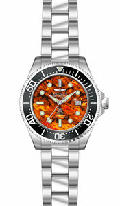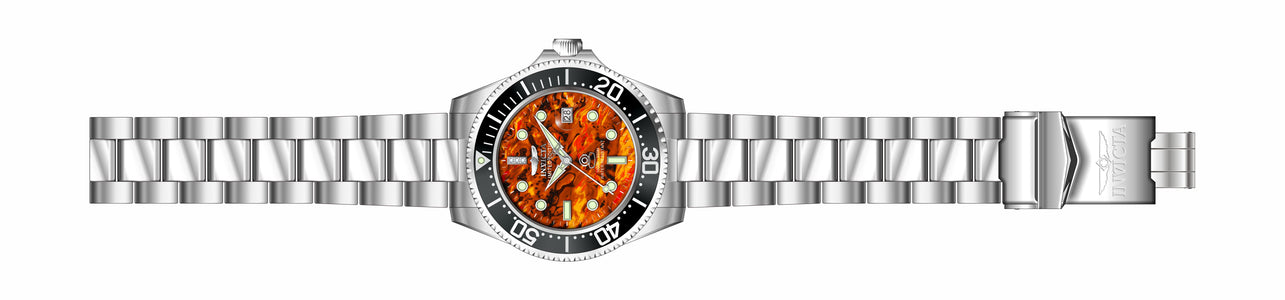 INVICTA Pro Diver Men 47mm Stainless Steel Steel Orange dial NH35A Automatic , Band Material: Stainless Steel, Band Tone: Steel, Band Size [mm]: 22, Band Length [mm]: 210, Buckle Type: Fold over safety , Crown Type : Screw Down, Case Material : Stainless Steel, Case Tone : Steel, Case Size (mm) : 47, Case Back : Exhibition, Material of Hands : Metal, Color of Hands : Silver,Luminous, Crystal Type : Mineral, Bezel Material : Stainless Steel, Dial Material : Abalone, Dial Color : Orange, Dial Pattern : None .Purchasing these parts and having a non-authorized repair center open your watch voids all manufacturing warranties. Invicta cannot guarantee the quality standards of an altered timepiece, the standard 3-year limited warranty on Invicta timepieces shall be invalid if the timepiece is serviced at any time by an unauthorized repair center. This includes battery replacements, which must be done at an Invicta authorized repair center in order to maintain the eligibility of the warranty. Please follow the link below to learn more about Invicta's warranty.https://cdn.invictawatch.com/www/files/invicta-warranty-2018.pdf