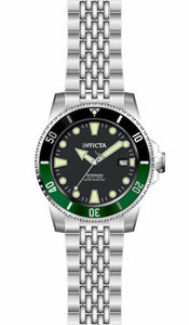 INVICTA Pro Diver Men 44mm Stainless Steel Steel Black dial NH35A Automatic , Band Material: Stainless Steel, Band Tone: Steel, Band Size [mm]: 22, Band Length [mm]: 215, Buckle Type: Fold over safety , Crown Type : Push, Case Material : Stainless Steel, Case Tone : Steel, Case Size (mm) : 44, Case Back : Exhibition, Material of Hands : Metal, Color of Hands : Silver,Luminous, Crystal Type : Mineral, Bezel Material : Stainless Steel, Dial Material : Metal, Dial Color : Black, Dial Pattern : None .Purchasing these parts and having a non-authorized repair center open your watch voids all manufacturing warranties. Invicta cannot guarantee the quality standards of an altered timepiece, the standard 3-year limited warranty on Invicta timepieces shall be invalid if the timepiece is serviced at any time by an unauthorized repair center. This includes battery replacements, which must be done at an Invicta authorized repair center in order to maintain the eligibility of the warranty. Please follow the link below to learn more about Invicta's warranty.https://cdn.invictawatch.com/www/files/invicta-warranty-2018.pdf