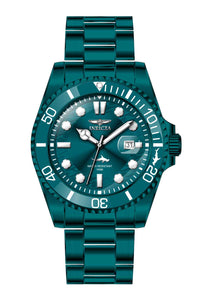 INVICTA Pro Diver Men 43mm Stainless Steel Green Green dial PC32 Quartz , Band Material: Stainless Steel, Band Tone: Green, Band Size [mm]: 22, Band Length [mm]: 198, Buckle Type: Fold over safety , Crown Type : Push, Case Material : Stainless Steel, Case Tone : Green, Case Size (mm) : 43, Case Back : Solid, Material of Hands : Metal, Color of Hands : White,Silver, Crystal Type : Flame Fusion, Bezel Material : Stainless Steel, Dial Material : Metal, Dial Color : Green, Dial Pattern : Sun-ray Finish .Purchasing these parts and having a non-authorized repair center open your watch voids all manufacturing warranties. Invicta cannot guarantee the quality standards of an altered timepiece, the standard 3-year limited warranty on Invicta timepieces shall be invalid if the timepiece is serviced at any time by an unauthorized repair center. This includes battery replacements, which must be done at an Invicta authorized repair center in order to maintain the eligibility of the warranty. Please follow the link below to learn more about Invicta's warranty.https://cdn.invictawatch.com/www/files/invicta-warranty-2018.pdf