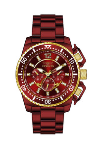 INVICTA Pro Diver Men 48mm Stainless Steel Red Red dial VD54 Quartz , Band Material: Stainless Steel, Band Tone: Red, Band Size [mm]: 24, Band Length [mm]: 195, Buckle Type: Fold over safety , Crown Type : Push, Case Material : Stainless Steel, Case Tone : Red, Case Size (mm) : 48, Case Back : Solid, Material of Hands : Metal, Color of Hands : White,Gold, Crystal Type : Flame Fusion, Bezel Material : Stainless Steel, Dial Material : Metal, Dial Color : Red, Dial Pattern : Sun-ray Finish .Purchasing these parts and having a non-authorized repair center open your watch voids all manufacturing warranties. Invicta cannot guarantee the quality standards of an altered timepiece, the standard 3-year limited warranty on Invicta timepieces shall be invalid if the timepiece is serviced at any time by an unauthorized repair center. This includes battery replacements, which must be done at an Invicta authorized repair center in order to maintain the eligibility of the warranty. Please follow the link below to learn more about Invicta's warranty.https://cdn.invictawatch.com/www/files/invicta-warranty-2018.pdf
