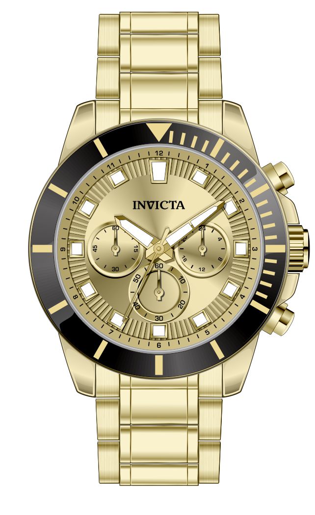 Band Material: Stainless Steel, Band Tone: Gold, Band Width: 22MM, Band Length: 187MM, Crown Type: Push, Case Material: Stainless Steel, Case Tone: Gold, Case Size [mm]: 45, Crystal Type: Flame Fusion, Dial Material: Brass, Dial Color: Gold .Purchasing these parts and having a non-authorized repair center open your watch voids all manufacturing warranties. Invicta cannot guarantee the quality standards of an altered timepiece, the standard 3-year limited warranty on Invicta timepieces shall be invalid if the timepiece is serviced at any time by an unauthorized repair center. This includes battery replacements, which must be done at an Invicta authorized repair center in order to maintain the eligibility of the warranty. Please follow the link below to learn more about Invicta's warranty.https://cdn.invictawatch.com/www/files/invicta-warranty-2018.pdf