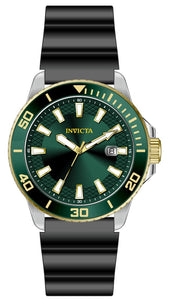 Band Material: Silicone, Band Tone: Black, Band Width: 22MM, Band Length: 225MM, Crown Type: Push, Case Material: Stainless Steel, Case Tone: Steel, Case Size [mm]: 45, Crystal Type: Flame Fusion, Dial Material: Brass, Dial Color: Green .Purchasing these parts and having a non-authorized repair center open your watch voids all manufacturing warranties. Invicta cannot guarantee the quality standards of an altered timepiece, the standard 3-year limited warranty on Invicta timepieces shall be invalid if the timepiece is serviced at any time by an unauthorized repair center. This includes battery replacements, which must be done at an Invicta authorized repair center in order to maintain the eligibility of the warranty. Please follow the link below to learn more about Invicta's warranty.https://cdn.invictawatch.com/www/files/invicta-warranty-2018.pdf
