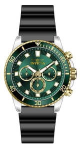 Band Material: Silicone, Band Tone: Black, Band Width: 22MM, Band Length: 225MM, Crown Type: Push, Case Material: Stainless Steel, Case Tone: Steel, Case Size [mm]: 45, Crystal Type: Flame Fusion, Dial Material: Brass, Dial Color: Green .Purchasing these parts and having a non-authorized repair center open your watch voids all manufacturing warranties. Invicta cannot guarantee the quality standards of an altered timepiece, the standard 3-year limited warranty on Invicta timepieces shall be invalid if the timepiece is serviced at any time by an unauthorized repair center. This includes battery replacements, which must be done at an Invicta authorized repair center in order to maintain the eligibility of the warranty. Please follow the link below to learn more about Invicta's warranty.https://cdn.invictawatch.com/www/files/invicta-warranty-2018.pdf