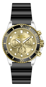 Band Material: Silicone, Band Tone: Black, Band Width: 22MM, Band Length: 225MM, Crown Type: Push, Case Material: Stainless Steel, Case Tone: Steel, Case Size [mm]: 45, Crystal Type: Flame Fusion, Dial Material: Brass, Dial Color: Gold .Purchasing these parts and having a non-authorized repair center open your watch voids all manufacturing warranties. Invicta cannot guarantee the quality standards of an altered timepiece, the standard 3-year limited warranty on Invicta timepieces shall be invalid if the timepiece is serviced at any time by an unauthorized repair center. This includes battery replacements, which must be done at an Invicta authorized repair center in order to maintain the eligibility of the warranty. Please follow the link below to learn more about Invicta's warranty.https://cdn.invictawatch.com/www/files/invicta-warranty-2018.pdf