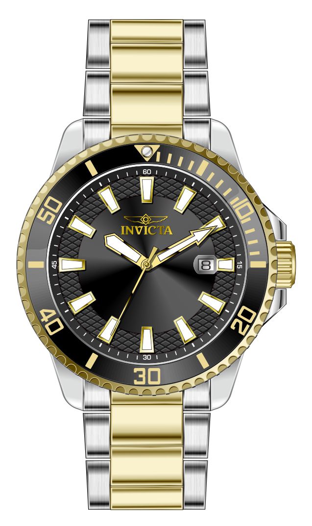 Band Material: Stainless Steel, Band Tone: Steel,Gold, Band Width: 22MM, Band Length: 191MM, Crown Type: Push, Case Material: Stainless Steel, Case Tone: Steel, Case Size [mm]: 45, Crystal Type: Flame Fusion, Dial Material: Brass, Dial Color: Gold .Purchasing these parts and having a non-authorized repair center open your watch voids all manufacturing warranties. Invicta cannot guarantee the quality standards of an altered timepiece, the standard 3-year limited warranty on Invicta timepieces shall be invalid if the timepiece is serviced at any time by an unauthorized repair center. This includes battery replacements, which must be done at an Invicta authorized repair center in order to maintain the eligibility of the warranty. Please follow the link below to learn more about Invicta's warranty.https://cdn.invictawatch.com/www/files/invicta-warranty-2018.pdf