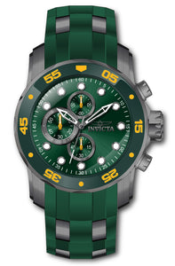 Band Material: Stainless Steel,Silicone, Band Tone: Gunmetal,Green, Band Width: 26MM, Band Length: 210MM, Crown Type: Push, Case Material: Stainless Steel, Case Tone: Gunmetal, Case Size [mm]: 48, Case Back: Solid, Material of Hands: Metal, Color of Hands: Yellow,Orange,Grey, Crystal Type: Flame Fusion, Bezel Material: Stainless Steel,Aluminum, Dial Material: Metal, Dial Color: Green .Purchasing these parts and having a non-authorized repair center open your watch voids all manufacturing warranties. Invicta cannot guarantee the quality standards of an altered timepiece, the standard 3-year limited warranty on Invicta timepieces shall be invalid if the timepiece is serviced at any time by an unauthorized repair center. This includes battery replacements, which must be done at an Invicta authorized repair center in order to maintain the eligibility of the warranty. Please follow the link below to learn more about Invicta's warranty.https://cdn.invictawatch.com/www/files/invicta-warranty-2018.pdf