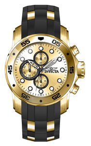 Band Material: Stainless Steel,Silicone, Band Tone: Gold,Black, Band Width: 26MM, Band Length: 210MM, Crown Type: Push, Case Material: Stainless Steel, Case Tone: Gold, Case Size [mm]: 48, Case Back: Solid, Material of Hands: Metal, Color of Hands: Black, Crystal Type: Flame Fusion, Bezel Material: Stainless Steel,Aluminum, Dial Material: Metal, Dial Color: Gold .Purchasing these parts and having a non-authorized repair center open your watch voids all manufacturing warranties. Invicta cannot guarantee the quality standards of an altered timepiece, the standard 3-year limited warranty on Invicta timepieces shall be invalid if the timepiece is serviced at any time by an unauthorized repair center. This includes battery replacements, which must be done at an Invicta authorized repair center in order to maintain the eligibility of the warranty. Please follow the link below to learn more about Invicta's warranty.https://cdn.invictawatch.com/www/files/invicta-warranty-2018.pdf
