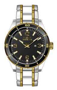 Band Material: Stainless Steel, Band Tone: Steel,Gold, Band Width: 22MM, Band Length: 185MM, Crown Type: Push, Case Material: Stainless Steel, Case Tone: Steel, Case Size [mm]: 44, Crystal Type: Flame Fusion, Dial Material: Brass, Dial Color: Black .Purchasing these parts and having a non-authorized repair center open your watch voids all manufacturing warranties. Invicta cannot guarantee the quality standards of an altered timepiece, the standard 3-year limited warranty on Invicta timepieces shall be invalid if the timepiece is serviced at any time by an unauthorized repair center. This includes battery replacements, which must be done at an Invicta authorized repair center in order to maintain the eligibility of the warranty. Please follow the link below to learn more about Invicta's warranty.https://cdn.invictawatch.com/www/files/invicta-warranty-2018.pdf