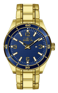 Band Material: Stainless Steel, Band Tone: Gold, Band Width: 22MM, Band Length: 185MM, Crown Type: Push, Case Material: Stainless Steel, Case Tone: Gold, Case Size [mm]: 44, Crystal Type: Flame Fusion, Dial Material: Brass, Dial Color: Blue .Purchasing these parts and having a non-authorized repair center open your watch voids all manufacturing warranties. Invicta cannot guarantee the quality standards of an altered timepiece, the standard 3-year limited warranty on Invicta timepieces shall be invalid if the timepiece is serviced at any time by an unauthorized repair center. This includes battery replacements, which must be done at an Invicta authorized repair center in order to maintain the eligibility of the warranty. Please follow the link below to learn more about Invicta's warranty.https://cdn.invictawatch.com/www/files/invicta-warranty-2018.pdf