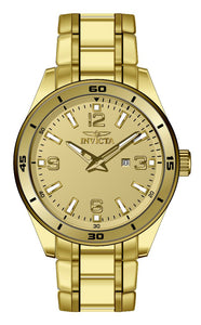 Band Material: Stainless Steel, Band Tone: Gold, Band Width: 22MM, Band Length: 185MM, Crown Type: Push, Case Material: Stainless Steel, Case Tone: Gold, Case Size [mm]: 44, Crystal Type: Flame Fusion, Dial Material: Brass, Dial Color: Gold .Purchasing these parts and having a non-authorized repair center open your watch voids all manufacturing warranties. Invicta cannot guarantee the quality standards of an altered timepiece, the standard 3-year limited warranty on Invicta timepieces shall be invalid if the timepiece is serviced at any time by an unauthorized repair center. This includes battery replacements, which must be done at an Invicta authorized repair center in order to maintain the eligibility of the warranty. Please follow the link below to learn more about Invicta's warranty.https://cdn.invictawatch.com/www/files/invicta-warranty-2018.pdf