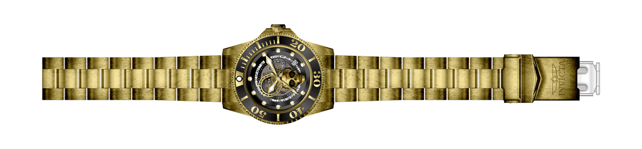 Band Material: Stainless Steel, Band Tone: Gold, Band Width: 22MM, Band Length: 205MM, Crown Type: Screw Down, Case Material: Stainless Steel, Case Tone: Gold, Case Size [mm]: 43, Case Back: Solid, Material of Hands: Metal, Color of Hands: Gold,Luminous, Crystal Type: Flame Fusion, Bezel Material: Stainless Steel, Dial Material: Metal, Dial Color: Black, Dial Pattern: None .Purchasing these parts and having a non-authorized repair center open your watch voids all manufacturing warranties. Invicta cannot guarantee the quality standards of an altered timepiece, the standard 3-year limited warranty on Invicta timepieces shall be invalid if the timepiece is serviced at any time by an unauthorized repair center. This includes battery replacements, which must be done at an Invicta authorized repair center in order to maintain the eligibility of the warranty. Please follow the link below to learn more about Invicta's warranty.https://cdn.invictawatch.com/www/files/invicta-warranty-2018.pdf