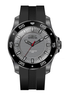 Band Material: Silicone, Band Tone: Black, Band Width: 26MM, Band Length: 210MM, Crown Type: Push, Case Material: Stainless Steel, Case Tone: Gunmetal, Case Size [mm]: 50, Case Back: Solid, Material of Hands: Metal, Color of Hands: Black,Red, Crystal Type: Flame Fusion, Bezel Material: Stainless Steel,Aluminum, Dial Material: Metal, Dial Color: Grey, Dial Pattern: Textured Pattern .Purchasing these parts and having a non-authorized repair center open your watch voids all manufacturing warranties. Invicta cannot guarantee the quality standards of an altered timepiece, the standard 3-year limited warranty on Invicta timepieces shall be invalid if the timepiece is serviced at any time by an unauthorized repair center. This includes battery replacements, which must be done at an Invicta authorized repair center in order to maintain the eligibility of the warranty. Please follow the link below to learn more about Invicta's warranty.https://cdn.invictawatch.com/www/files/invicta-warranty-2018.pdf