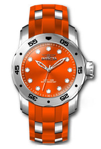 Band Material: Stainless Steel,Silicone, Band Tone: Steel,Orange, Band Width: 26MM, Band Length: 190MM, Crown Type: Push, Case Material: Stainless Steel, Case Tone: Steel, Case Size [mm]: 48, Case Back: Solid, Material of Hands: Metal, Color of Hands: Silver, Crystal Type: Flame Fusion, Bezel Material: Stainless Steel,Aluminum, Dial Material: Metal, Dial Color: Orange .Purchasing these parts and having a non-authorized repair center open your watch voids all manufacturing warranties. Invicta cannot guarantee the quality standards of an altered timepiece, the standard 3-year limited warranty on Invicta timepieces shall be invalid if the timepiece is serviced at any time by an unauthorized repair center. This includes battery replacements, which must be done at an Invicta authorized repair center in order to maintain the eligibility of the warranty. Please follow the link below to learn more about Invicta's warranty.https://cdn.invictawatch.com/www/files/invicta-warranty-2018.pdf