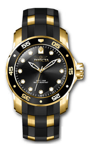 Band Material: Stainless Steel,Silicone, Band Tone: Gold,Black, Band Width: 26MM, Band Length: 190MM, Crown Type: Push, Case Material: Stainless Steel, Case Tone: Gold, Case Size [mm]: 48, Case Back: Solid, Material of Hands: Metal, Color of Hands: Gold, Crystal Type: Flame Fusion, Bezel Material: Stainless Steel,Aluminum, Dial Material: Metal, Dial Color: Black .Purchasing these parts and having a non-authorized repair center open your watch voids all manufacturing warranties. Invicta cannot guarantee the quality standards of an altered timepiece, the standard 3-year limited warranty on Invicta timepieces shall be invalid if the timepiece is serviced at any time by an unauthorized repair center. This includes battery replacements, which must be done at an Invicta authorized repair center in order to maintain the eligibility of the warranty. Please follow the link below to learn more about Invicta's warranty.https://cdn.invictawatch.com/www/files/invicta-warranty-2018.pdf