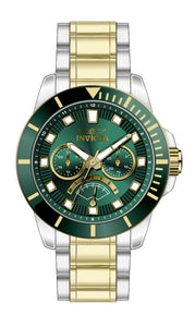 Band Material: Stainless Steel, Band Tone: Steel,Gold, Band Width: 22MM, Band Length: 187MM, Crown Type: Push, Case Material: Stainless Steel, Case Tone: Gold, Case Size [mm]: 45, Crystal Type: Flame Fusion, Dial Material: Brass, Dial Color: Green .Purchasing these parts and having a non-authorized repair center open your watch voids all manufacturing warranties. Invicta cannot guarantee the quality standards of an altered timepiece, the standard 3-year limited warranty on Invicta timepieces shall be invalid if the timepiece is serviced at any time by an unauthorized repair center. This includes battery replacements, which must be done at an Invicta authorized repair center in order to maintain the eligibility of the warranty. Please follow the link below to learn more about Invicta's warranty.https://cdn.invictawatch.com/www/files/invicta-warranty-2018.pdf