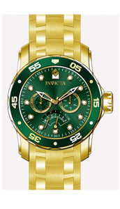 Band Material: Stainless Steel, Band Tone: Gold, Band Width: 26MM, Band Length: 215MM, Crown Type: Push, Case Material: Stainless Steel, Case Tone: Gold, Case Size [mm]: 48, Crystal Type: Flame Fusion, Dial Material: Brass, Dial Color: Green .Purchasing these parts and having a non-authorized repair center open your watch voids all manufacturing warranties. Invicta cannot guarantee the quality standards of an altered timepiece, the standard 3-year limited warranty on Invicta timepieces shall be invalid if the timepiece is serviced at any time by an unauthorized repair center. This includes battery replacements, which must be done at an Invicta authorized repair center in order to maintain the eligibility of the warranty. Please follow the link below to learn more about Invicta's warranty.https://cdn.invictawatch.com/www/files/invicta-warranty-2018.pdf