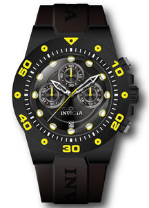 Band Material: Silicone, Band Tone: Black, Band Width: 28MM, Band Length: 210MM, Crown Type: Push, Case Material: Stainless Steel, Case Tone: Black, Case Size [mm]: 46, Case Back: Solid, Material of Hands: Metal, Color of Hands: Silver,Yellow, Crystal Type: Flame Fusion, Bezel Material: Stainless Steel, Dial Material: Metal, Dial Color: Black .Purchasing these parts and having a non-authorized repair center open your watch voids all manufacturing warranties. Invicta cannot guarantee the quality standards of an altered timepiece, the standard 3-year limited warranty on Invicta timepieces shall be invalid if the timepiece is serviced at any time by an unauthorized repair center. This includes battery replacements, which must be done at an Invicta authorized repair center in order to maintain the eligibility of the warranty. Please follow the link below to learn more about Invicta's warranty.https://cdn.invictawatch.com/www/files/invicta-warranty-2018.pdf