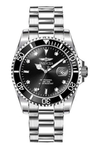 Band Material: Stainless Steel, Band Tone: Steel, Band Width: 20MM, Band Length: 180MM, Crown Type: Push, Case Material: Stainless Steel, Case Tone: Steel, Case Size [mm]: 40, Case Back: Solid, Material of Hands: Metal, Color of Hands: Silver, Crystal Type: Flame Fusion, Bezel Material: Stainless Steel,Aluminum, Dial Material: Metal, Dial Color: Black, Dial Pattern: None .Purchasing these parts and having a non-authorized repair center open your watch voids all manufacturing warranties. Invicta cannot guarantee the quality standards of an altered timepiece, the standard 3-year limited warranty on Invicta timepieces shall be invalid if the timepiece is serviced at any time by an unauthorized repair center. This includes battery replacements, which must be done at an Invicta authorized repair center in order to maintain the eligibility of the warranty. Please follow the link below to learn more about Invicta's warranty.https://cdn.invictawatch.com/www/files/invicta-warranty-2018.pdf