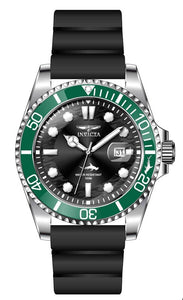 Band Material: Silicone, Band Tone: Black, Band Width: 22MM, Band Length: 210MM, Crown Type: Screw Down, Case Material: Stainless Steel, Case Tone: Steel, Case Size [mm]: 43, Case Back: Solid, Material of Hands: Metal, Color of Hands: Silver, Crystal Type: Flame Fusion, Bezel Material: Stainless Steel,Aluminum, Dial Material: Metal, Dial Color: Black .Purchasing these parts and having a non-authorized repair center open your watch voids all manufacturing warranties. Invicta cannot guarantee the quality standards of an altered timepiece, the standard 3-year limited warranty on Invicta timepieces shall be invalid if the timepiece is serviced at any time by an unauthorized repair center. This includes battery replacements, which must be done at an Invicta authorized repair center in order to maintain the eligibility of the warranty. Please follow the link below to learn more about Invicta's warranty.https://cdn.invictawatch.com/www/files/invicta-warranty-2018.pdf