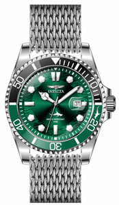 Band Material: Mesh, Band Tone: Steel, Band Width: 22MM, Band Length: 210MM, Crown Type: Screw Down, Case Material: Stainless Steel, Case Tone: Steel, Case Size [mm]: 43, Case Back: Solid, Material of Hands: Metal, Color of Hands: Silver, Crystal Type: Flame Fusion, Bezel Material: Stainless Steel,Aluminum, Dial Material: Metal, Dial Color: Green .Purchasing these parts and having a non-authorized repair center open your watch voids all manufacturing warranties. Invicta cannot guarantee the quality standards of an altered timepiece, the standard 3-year limited warranty on Invicta timepieces shall be invalid if the timepiece is serviced at any time by an unauthorized repair center. This includes battery replacements, which must be done at an Invicta authorized repair center in order to maintain the eligibility of the warranty. Please follow the link below to learn more about Invicta's warranty.https://cdn.invictawatch.com/www/files/invicta-warranty-2018.pdf