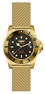 Band Material: Stainless Steel, Band Tone: Gold, Band Width: 20MM, Band Length: 205MM, Crown Type: Screw Down, Case Material: Stainless Steel, Case Tone: Gold, Case Size [mm]: 40, Case Back: Exhibition, Material of Hands: Brass, Color of Hands: Gold, Crystal Type: Mineral, Bezel Material: Stainless Steel,Aluminum, Dial Material: Brass, Dial Color: Black, Dial Pattern: Glossy Finish .Purchasing these parts and having a non-authorized repair center open your watch voids all manufacturing warranties. Invicta cannot guarantee the quality standards of an altered timepiece, the standard 3-year limited warranty on Invicta timepieces shall be invalid if the timepiece is serviced at any time by an unauthorized repair center. This includes battery replacements, which must be done at an Invicta authorized repair center in order to maintain the eligibility of the warranty. Please follow the link below to learn more about Invicta's warranty.https://cdn.invictawatch.com/www/files/invicta-warranty-2018.pdf