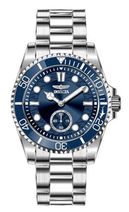 Band Material: Stainless Steel, Band Tone: Steel, Band Width: 22MM, Band Length: 185MM, Crown Type: Screw Down, Case Material: Stainless Steel, Case Tone: Steel, Case Size [mm]: 43, Case Back: Solid, Material of Hands: Brass, Color of Hands: Silver,Luminous, Crystal Type: Mineral, Bezel Material: Stainless Steel,Aluminum, Dial Material: Brass, Dial Color: Blue, Dial Pattern: Sun-ray Finish .Purchasing these parts and having a non-authorized repair center open your watch voids all manufacturing warranties. Invicta cannot guarantee the quality standards of an altered timepiece, the standard 3-year limited warranty on Invicta timepieces shall be invalid if the timepiece is serviced at any time by an unauthorized repair center. This includes battery replacements, which must be done at an Invicta authorized repair center in order to maintain the eligibility of the warranty. Please follow the link below to learn more about Invicta's warranty.https://cdn.invictawatch.com/www/files/invicta-warranty-2018.pdf