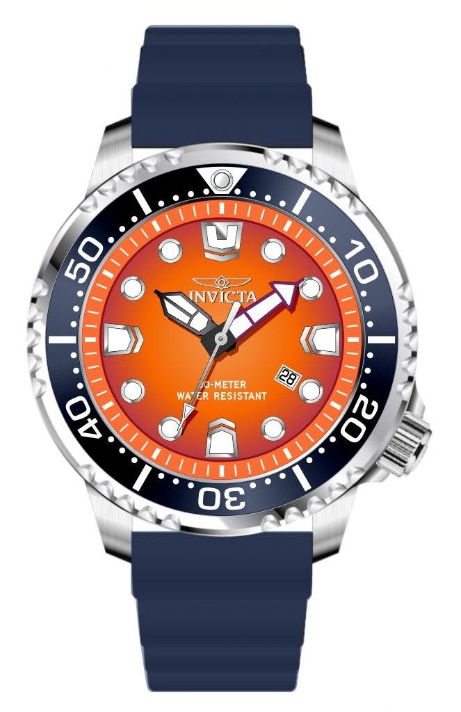 Band Material: Silicone, Band Tone: Blue, Band Width: 22MM, Band Length: 210MM, Crown Type: Push, Case Material: Stainless Steel, Case Tone: Steel, Case Size [mm]: 48, Case Back: Solid, Material of Hands: Brass, Color of Hands: Black,Silver,Purple,Luminous, Crystal Type: Mineral, Bezel Material: Stainless Steel,Aluminum, Dial Material: Brass, Dial Color: Orange, Dial Pattern: Gradient Pattern .Purchasing these parts and having a non-authorized repair center open your watch voids all manufacturing warranties. Invicta cannot guarantee the quality standards of an altered timepiece, the standard 3-year limited warranty on Invicta timepieces shall be invalid if the timepiece is serviced at any time by an unauthorized repair center. This includes battery replacements, which must be done at an Invicta authorized repair center in order to maintain the eligibility of the warranty. Please follow the link below to learn more about Invicta's warranty.https://cdn.invictawatch.com/www/files/invicta-warranty-2018.pdf