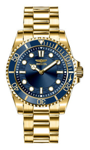 Band Material: Stainless Steel, Band Tone: Gold, Band Width: 22MM, Band Length: 185MM, Crown Type: Screw Down, Case Material: Stainless Steel, Case Tone: Gold, Case Size [mm]: 43, Case Back: Solid, Material of Hands: Brass, Color of Hands: Gold,Luminous, Crystal Type: Mineral, Bezel Material: Stainless Steel,Aluminum, Dial Material: Brass, Dial Color: Blue, Dial Pattern: Sun-ray Finish .Purchasing these parts and having a non-authorized repair center open your watch voids all manufacturing warranties. Invicta cannot guarantee the quality standards of an altered timepiece, the standard 3-year limited warranty on Invicta timepieces shall be invalid if the timepiece is serviced at any time by an unauthorized repair center. This includes battery replacements, which must be done at an Invicta authorized repair center in order to maintain the eligibility of the warranty. Please follow the link below to learn more about Invicta's warranty.https://cdn.invictawatch.com/www/files/invicta-warranty-2018.pdf
