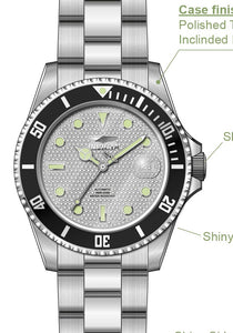 Band Material: Stainless Steel, Band Tone: Steel, Band Width: 22MM, Band Length: 205MM, Crown Type: Screw Down, Case Material: Stainless Steel, Case Tone: Steel, Case Size [mm]: 43, Material of Hands: Metal, Color of Hands: Silver, Crystal Type: Mineral, Bezel Material: Stainless Steel, Dial Material: Metal, Dial Color: Silver .Purchasing these parts and having a non-authorized repair center open your watch voids all manufacturing warranties. Invicta cannot guarantee the quality standards of an altered timepiece, the standard 3-year limited warranty on Invicta timepieces shall be invalid if the timepiece is serviced at any time by an unauthorized repair center. This includes battery replacements, which must be done at an Invicta authorized repair center in order to maintain the eligibility of the warranty. Please follow the link below to learn more about Invicta's warranty.https://cdn.invictawatch.com/www/files/invicta-warranty-2018.pdf