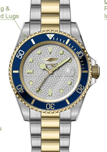 Band Material: Stainless Steel, Band Tone: Steel,Gold, Band Width: 20MM, Band Length: 205MM, Crown Type: Screw Down, Case Material: Stainless Steel, Case Tone: Gold,Steel, Case Size [mm]: 40, Material of Hands: Metal, Color of Hands: Gold, Crystal Type: Mineral, Bezel Material: Stainless Steel, Dial Material: Metal, Dial Color: Silver .Purchasing these parts and having a non-authorized repair center open your watch voids all manufacturing warranties. Invicta cannot guarantee the quality standards of an altered timepiece, the standard 3-year limited warranty on Invicta timepieces shall be invalid if the timepiece is serviced at any time by an unauthorized repair center. This includes battery replacements, which must be done at an Invicta authorized repair center in order to maintain the eligibility of the warranty. Please follow the link below to learn more about Invicta's warranty.https://cdn.invictawatch.com/www/files/invicta-warranty-2018.pdf