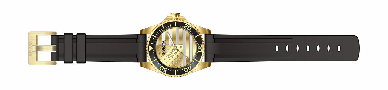 Band Material: Silicone, Band Tone: Black, Band Width: 22MM, Band Length: 220MM, Crown Type: Push, Case Material: Stainless Steel, Case Tone: Gold, Case Size [mm]: 45, Case Back: Solid, Material of Hands: Metal, Color of Hands: Gold,Luminous, Crystal Type: Mineral, Bezel Material: Stainless Steel, Dial Material: Metal, Dial Color: Silver,Gold, Dial Pattern: None .Purchasing these parts and having a non-authorized repair center open your watch voids all manufacturing warranties. Invicta cannot guarantee the quality standards of an altered timepiece, the standard 3-year limited warranty on Invicta timepieces shall be invalid if the timepiece is serviced at any time by an unauthorized repair center. This includes battery replacements, which must be done at an Invicta authorized repair center in order to maintain the eligibility of the warranty. Please follow the link below to learn more about Invicta's warranty.https://cdn.invictawatch.com/www/files/invicta-warranty-2018.pdf