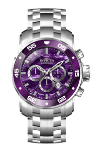 INVICTA Pro Diver Men 48mm Stainless Steel Steel Purple dial VD53 Quartz , Band Material: Stainless Steel, Band Tone: Steel, Band Size [mm]: 26, Band Length [mm]: 215, Buckle Type: Fold over safety , Crown Type : Push, Case Material : Stainless Steel, Case Tone : Steel, Case Size (mm) : 48, Case Back : Solid, Material of Hands : Metal, Color of Hands : White,Silver, Crystal Type : Flame Fusion, Bezel Material : Stainless Steel, Dial Material : Abalone, Dial Color : Purple, Dial Pattern : None .Purchasing these parts and having a non-authorized repair center open your watch voids all manufacturing warranties. Invicta cannot guarantee the quality standards of an altered timepiece, the standard 3-year limited warranty on Invicta timepieces shall be invalid if the timepiece is serviced at any time by an unauthorized repair center. This includes battery replacements, which must be done at an Invicta authorized repair center in order to maintain the eligibility of the warranty. Please follow the link below to learn more about Invicta's warranty.https://cdn.invictawatch.com/www/files/invicta-warranty-2018.pdf