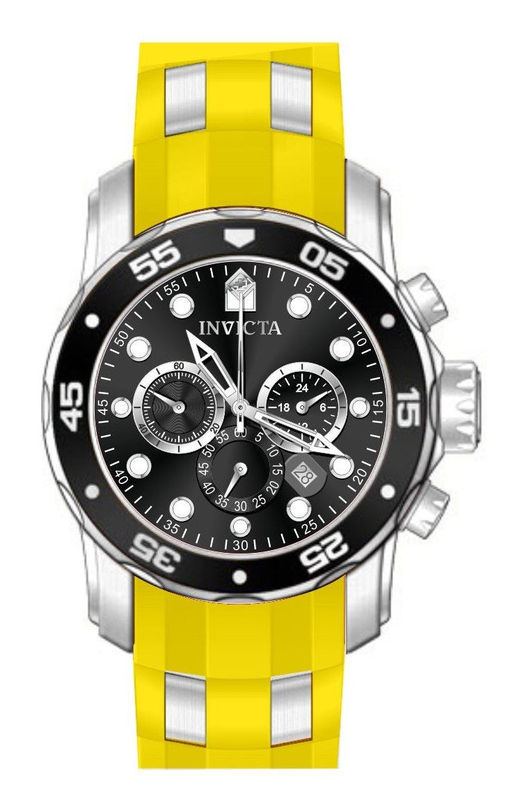 Band Material: Stainless Steel,Silicone, Band Tone: Steel,Yellow, Band Width: 26MM, Band Length: 225MM, Crown Type: Push, Case Material: Stainless Steel, Case Tone: Steel, Case Size [mm]: 48, Case Back: Solid, Material of Hands: Brass, Color of Hands: Silver,Luminous, Crystal Type: Mineral, Bezel Material: Stainless Steel,Aluminum, Dial Material: Metal, Dial Color: Black, Dial Pattern: Sun-ray Finish .Purchasing these parts and having a non-authorized repair center open your watch voids all manufacturing warranties. Invicta cannot guarantee the quality standards of an altered timepiece, the standard 3-year limited warranty on Invicta timepieces shall be invalid if the timepiece is serviced at any time by an unauthorized repair center. This includes battery replacements, which must be done at an Invicta authorized repair center in order to maintain the eligibility of the warranty. Please follow the link below to learn more about Invicta's warranty.https://cdn.invictawatch.com/www/files/invicta-warranty-2018.pdf