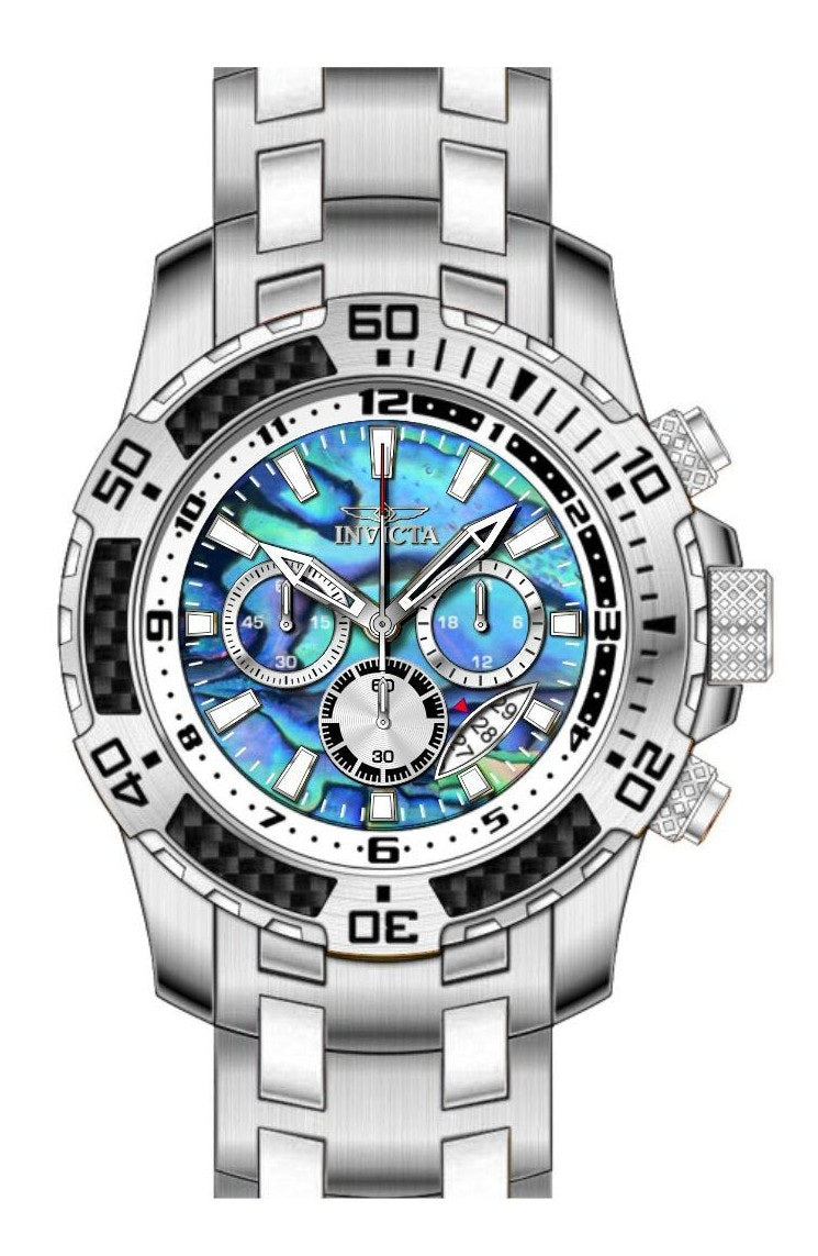 Band Material: Stainless Steel, Band Tone: Steel, Band Width: 26MM, Band Length: 195MM, Crown Type: Push, Case Material: Stainless Steel, Case Tone: Steel, Case Size [mm]: 51, Case Back: Solid, Material of Hands: Brass, Color of Hands: Silver,Luminous, Crystal Type: Flame Fusion, Bezel Material: Stainless Steel,Carbon Fiber, Dial Material: Abalone, Dial Color: Iridescent, Dial Pattern: None .Purchasing these parts and having a non-authorized repair center open your watch voids all manufacturing warranties. Invicta cannot guarantee the quality standards of an altered timepiece, the standard 3-year limited warranty on Invicta timepieces shall be invalid if the timepiece is serviced at any time by an unauthorized repair center. This includes battery replacements, which must be done at an Invicta authorized repair center in order to maintain the eligibility of the warranty. Please follow the link below to learn more about Invicta's warranty.https://cdn.invictawatch.com/www/files/invicta-warranty-2018.pdf